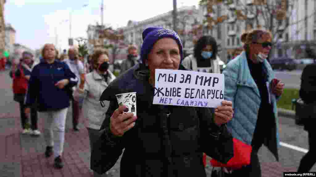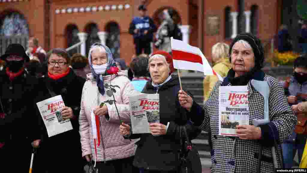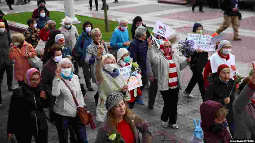 Марш пенсионеров прошел 5 октября в Минске. Его участники собрались на площади Независимости и прошли колонной по проспекту. У здания МВД они скандировали: "Фашизм не пройдет", "Караева под суд", "Свободу политзаключенным", "Свободу нашим внукам". Фоторепортаж вела белорусская служба Радио Свобода.